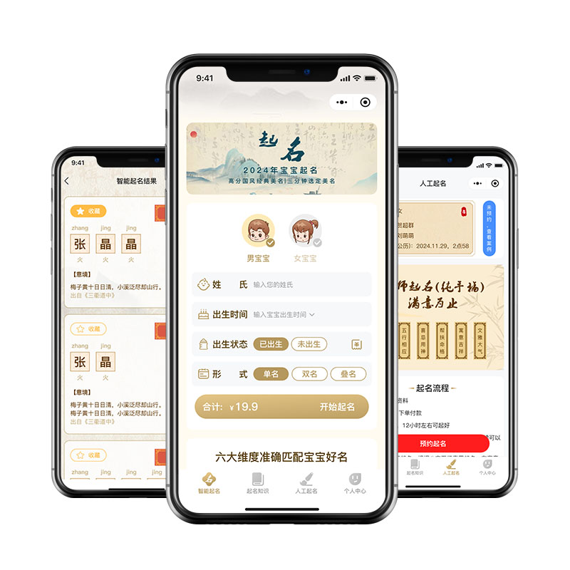 这是一款包含宝宝起名/测名/改名为一体的平台,支持人工起名,包含了免费接口,与多位权威的国学大师进行合作,实现高效准确权威的起名平台: